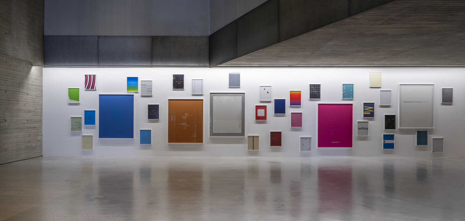 Walid Raad and the Atlas Group applied a similar mapping technique to an archive of photographs taken during the Lebanese Civil War. Colorful dots affixed to burnt and blasted landscapes locate and classify bullet holes according to the size and original manufacturer of their shells, proof that local and national conflicts are often subject to geopolitical intrigue. A slow-motion video by The Propeller Group, meanwhile, shows different kinds of bullets piercing a block of translucent ballistics gel, its rippling putty the same density as human flesh. Both works are unassuming at a glance, and visceral once you recognize their violent conceits. The same is true of Fiona Banner’s Parade (2004), which hovers cheerfully above the same gallery. A toy squadron of all 201 fighter planes in use around the world feels at once juvenile and sinister, casting dark shadows against the museum’s walls like birds of prey.