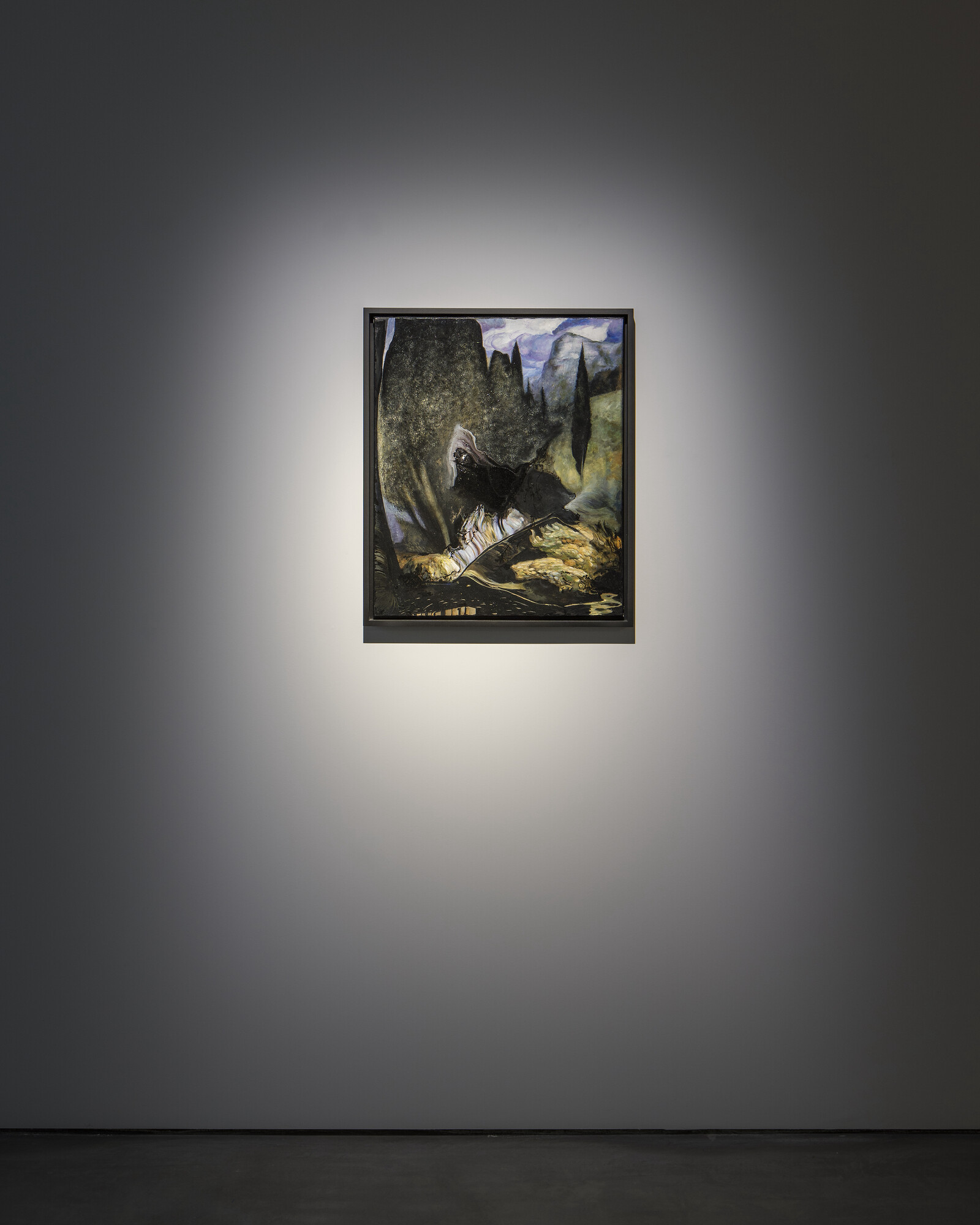 C3A’s stygian architecture—with a honeycomb floorplan in unfinished concrete, part bunker and part beehive—is generally well suited to the exhibition’s themes. Yet certain works can seem overly literal in this context, from Banner’s warplanes to Ryan Gander’s marble resin replica of an ancient Gaul statue, recast here as a legless amputee. Allora and Calzadilla’s ham-fisted Petrified Petrol Pump (2010) is a fossil for a future without fossil fuels. Other inclusions are, by contrast, too subtle: works by Lucas Arruda, Rachel Rose, Vivian Suter, and Álvaro Urbano are aesthetically pleasing but, apart from their depiction of plants and use of organic matter, don’t do much to develop the theme.