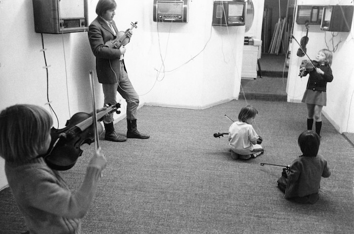 As is well known, digitalization has radically changed the way we produce, distribute, and listen to music, perhaps exacerbating the state of distraction Walter Benjamin discussed in relation to our experience of it.7 If nowadays music, like visual art, is increasingly accessed through technological mediation, often of low quality, the performing arts (performance art, choreography, storytelling, lecturing, and other time-based expressions) are gaining new interest in contemporary art discourse, perhaps for the uniqueness of a direct, unmediated music and sound live experience. Hence Block’s years of engagement with music, with his emphasis on the performative, physical, and sculptural nature of music and sound, and with the conceptual, absurdist, yet critical, iconoclastic character of his programming, merit being reevaluated in the present day. With this in mind, I asked René Block to recollect and comment on a short selection of images from the several music performances and exhibitions he organized. In doing so I hope to bring back the sense and the value of those moments to the majority of people who never witnessed them—the memory of an experience mediated by an eye and ear witness.
