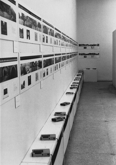 These compositions suggested a conceptual and performative music, as envisioned also by Satie. In his wonderful composition Musique d’ameublement [Furniture Music, 1917], the music is meant to become a fixed part of the room like a piece of furniture. When it premiered in 1917, three groups of eight musicians each had to play the three pieces of music (that were written especially by Satie) for as long as possible—that is, for several hours. In 1980, however, modern technology allowed for a brilliant yet poetic solution. We had prerecorded the three compositions, which were played in infinite loops. The room was furnished like a salon, with tapestry, armchairs, and a palm tree. Speakers were placed in different positions in the room, hidden under the tapestry, und thus the music became a permanent part of the environment—just like furniture. I think this exhibition was a kind of a summary of my early years in Berlin. It was received enthusiastically by the public and was luckily quite well documented through various reports on television.