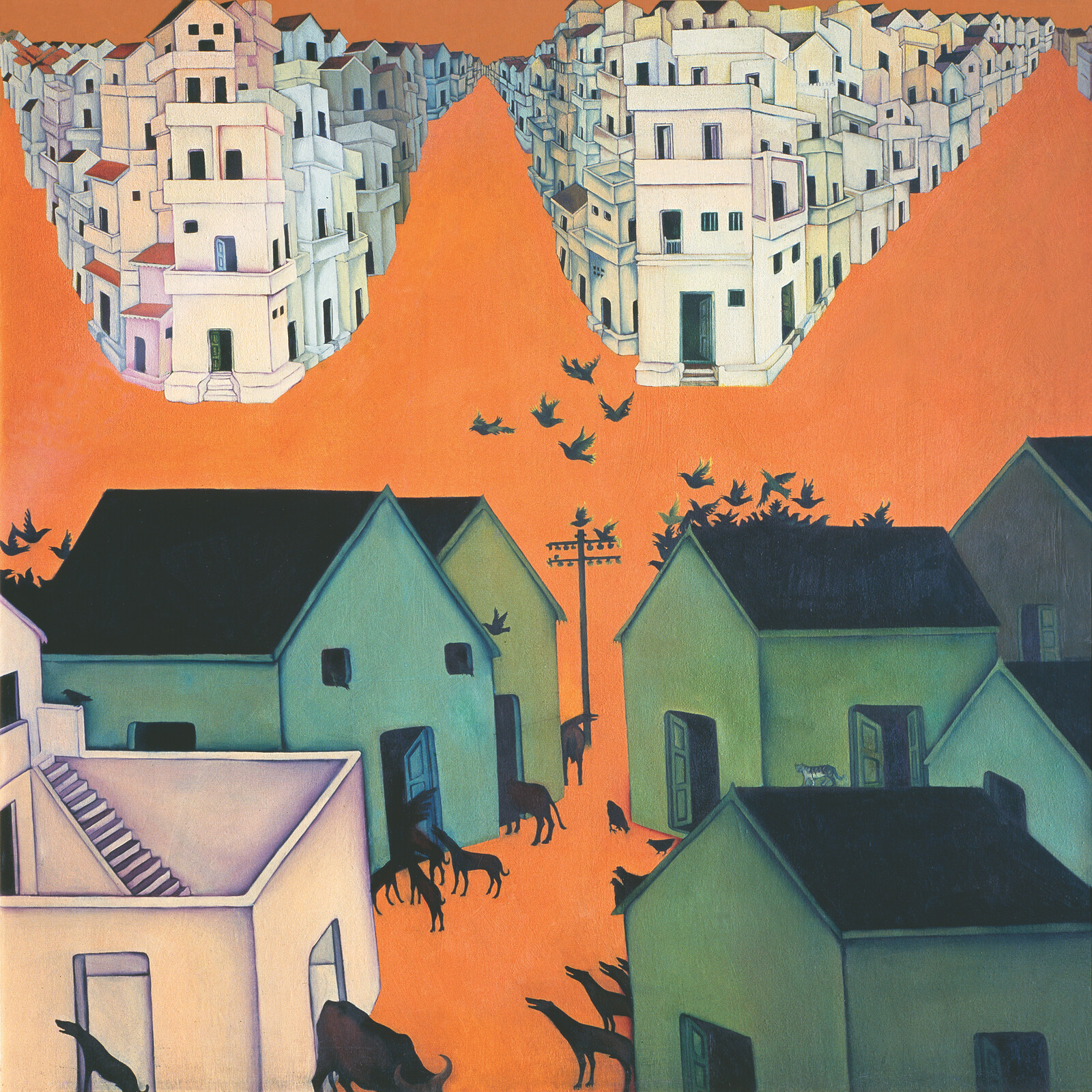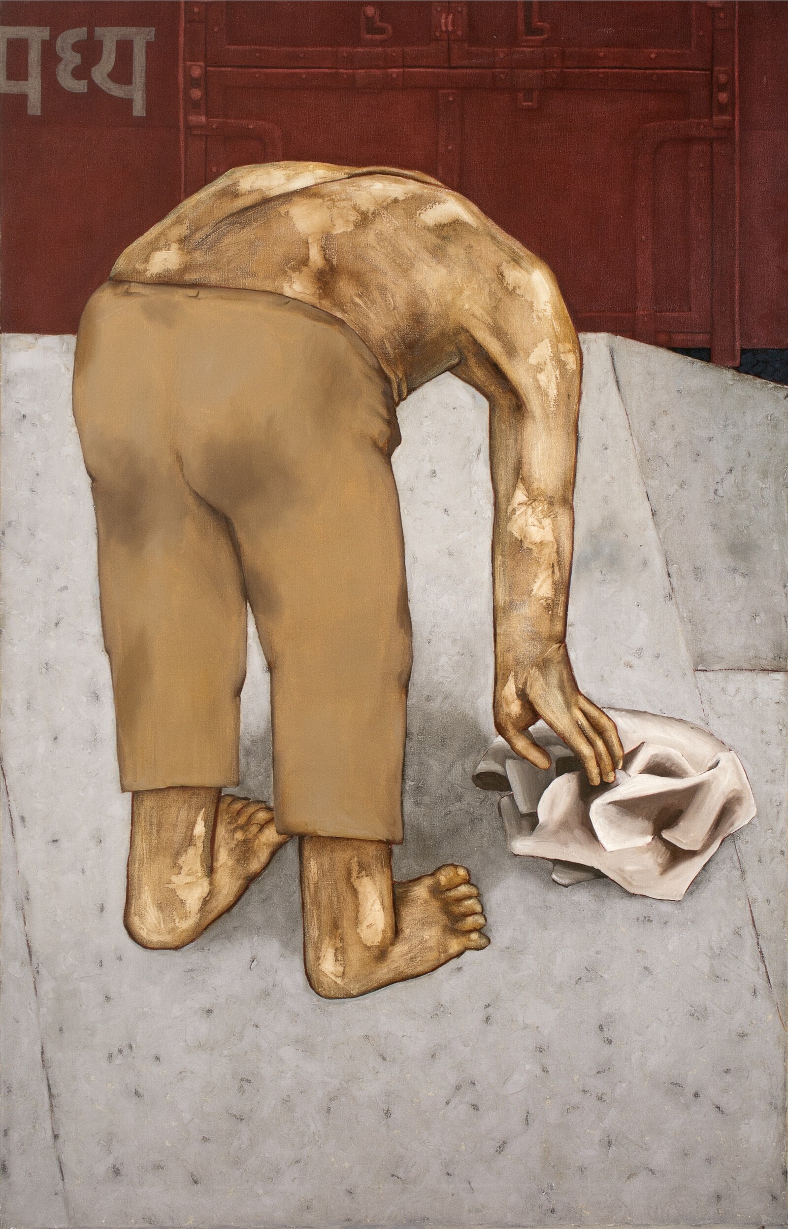 Gayatri C. Spivak tells us that these tensions were always present: that in 1946 Kolkata, neighboring Hindus and Muslims had lived in a conflict-ridden coexistence for centuries. Kolkata, Spivak writes, was “among the cruelest sites of the Hindu-Muslim violence. It was a politically mobilized violence. The country was going to be divided, and so people with whom we had lived forever, for centuries, in conflictual coexistence, suddenly became enemies.”5 Those religious tensions, accentuated in the aftermath of partition, are at the center of this serious exhibition that introduces its viewers to the immediate issues of leadership in post-1950 India (protagonists include Indira Gandhi, daughter of anti-colonial nationalist Jawaharlal Nehru, and her son Rajiv Gandhi). We see workers everywhere, carrying weights, crossing bridges; we see them in landscapes, and beyond the landscapes; we see them alone or in groups, such as in the paintings of Sudhir Patwardhan (Overbridge, 1981 and Town, 1984), and Gieve Patel (Two Men with Hand Cart, 1979 and Off Lamington Road, 1982–86). Even though landscapes had been part of Indian art for decades ( an echo of Turner and Constable from the British art curriculum), they take on a different meaning here. In a spoken introduction (published on the gallery’s website) Jhaveri stresses the emptiness, desolate, and angular nature of Sheikh’s painting Speechless City (1975). In Sheikh’s art, sleeplessness turns into speechlessness.