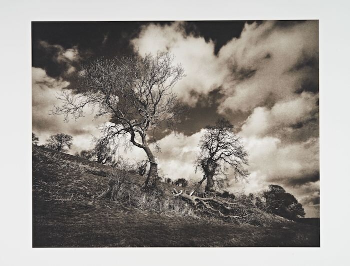 If there is a recurring thread, it is the making-grand of overlooked rural practices, an elevation of the humble. A pair of plough pieces (ca. 1900s) from the collection of local cheesemaker Richard Hollingbery form pillars at the threshold between two galleries; the set of four black-and-white photographs by Paul McCarthy (Use a Shovel to Throw Dirt in the Air, 1972) find beauty in the act of shoveling earth; while Don McCullin’s black-and-white photograph of a damaged local tree (Broken Tree, near Bruton, 2016) could be read as a metaphor for some mighty, unspecified tragedy. In the final gallery are several projects from Phytology, a medicinal arts garden in east London. Talya Baldwin has produced botanical illustrations of weeds using a biro found on site by artist Ellie Doney. Doney’s reclaimed detritus (Of Lost and Found, 2017) also includes an alphabet card, which she describes as “home, and dinner, for a constellation of snails.” That little phrase evokes the exhibition’s main thrust: that even the lowliest place (or work of art) can serve a multitude of overlapping functions.