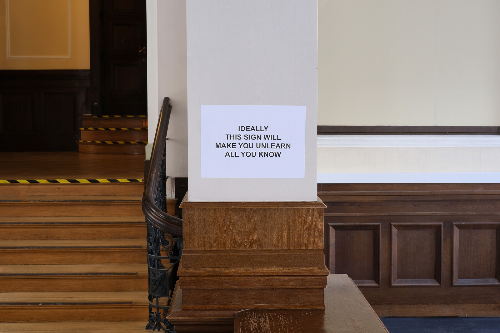 AA: You write about how it is a strategy of “narcissistic authoritarian statism” to drown out other voices by shouting over them. There are a number of spoken-word sound works and video installations in the show (by Kapwani Kiwanga, Laure Prouvost, Erica Scourti, Candice Breitz). How does the inclusion of these works, and their arrangement within the space—it’s notable that the sounds never bleed or compete—express an alternative politics of speaking and listening?