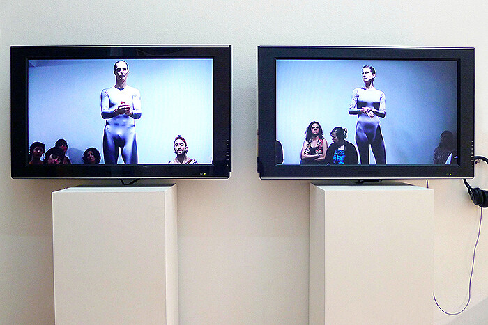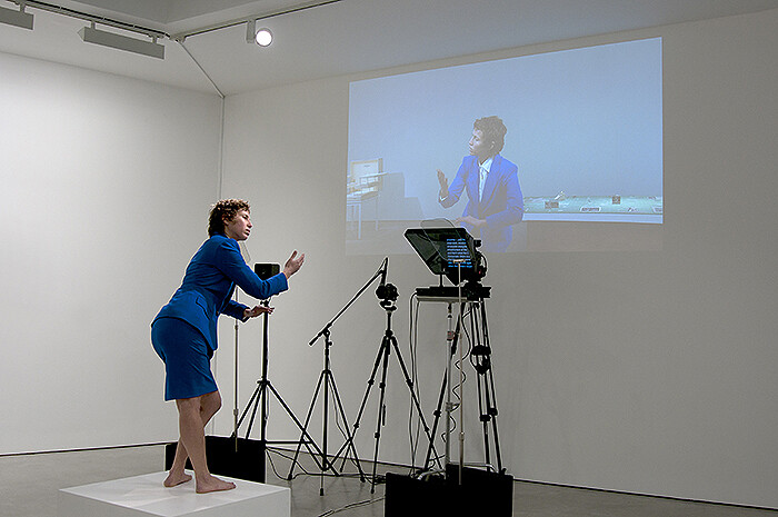 LMF: Something I thought was particularly impressive about this project was the diachronic scale of the inquiry, including the work of artists who are involved in a consideration of many different histories of state-building and an articulation of fundamental moments of change in the evolution of ideas. The exhibition was peppered with references to ancient civilizations in Greece, Cyprus, and Italy, alongside more recent demonstrations of the “magical” behavior of states. I’m thinking, for example, of the choreographic expressive gestures that world leaders learn to use as rhetorical techniques when giving speeches, which are relearned as choreography by dancers in Liz Magic Laser’s performative Stand Behind Me (2013), for example.