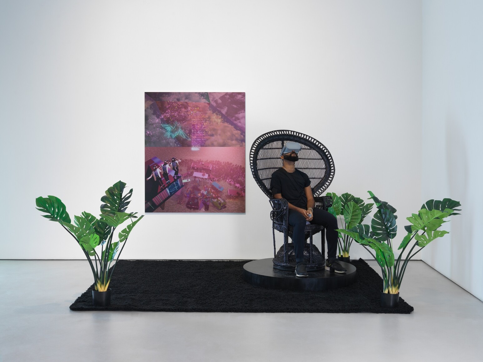 Jacolby Satterwhite: I was trying to get to that the whole decade. My digital, conceptual, and performance projects are my studies, my foundation for building a painting. Painting’s formalism shows up in the films, pigment prints, and the way that I exhibit them on the wall. When you’re working in the Autodesk Maya software, it feels like you’re painting because every color, every texture, every grid, the light, and the chiaroscuro… you have to choose them by hand.