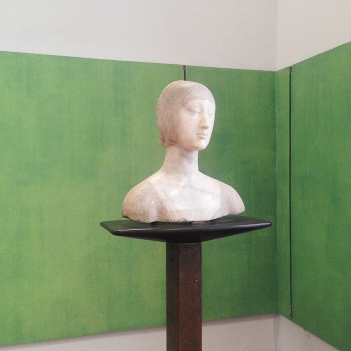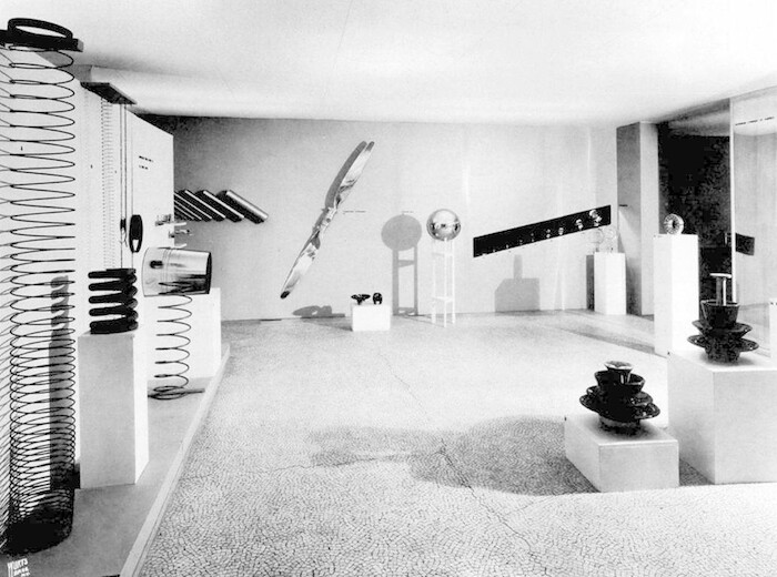 Through the 1940s and ’50s, a number of Italian architects would further revolutionize display techniques and perpetuate this oscillation between commodity presentation, store design, and re-orchestrations of classical collections. By taking objects out of vitrines or off defensive staging platforms and articulating them in a shared, dynamic architectural space, these designers idealized and aestheticized the museum as a container both of intrigue and value (in all senses of the word). Carlo Scarpa’s use of strategically hung colored blanking plates to pick out selected profiles of sculptures floated on slender pillars, for example, or Franco Albini’s pneumatic articulations of classical fragments in space were spatial conceits that were also applied to store designs for Olivetti (in Venice in 1957 and Paris in 1958, respectively), amongst Scarpa and Albini’s other commissions.5 In New York, another Italian design practice, BBPR, would once again cause a public sensation on Fifth Avenue by inviting members of the public to encase themselves in a vitrine: open to the street but apparently framed from within the store, the concession for Italian typewriter brand Olivetti blurred the boundary of inside and outside, creating a very public exhibition of the desirability of a luxury product, articulations of intimacy and spectacle familiar from BBPR’s redesigned exhibition displays at Castello Sforzesco in Milan (1954-6). Having moved from Italy to Brazil, architect and curator of the São Paulo Museum of Art Lina Bo Bardi did away with walls altogether (also an obstruction to Kiesler’s theories of Tensionism)6 with her staging of the museum’s historical painting collection on individual glass sheets—each economically clamped at its base in a cube of concrete.7 were removed and destroyed in 1996, and re-fabricated and re-installed by MASP artistic director Adriano Pedrosa in December 2015.]
