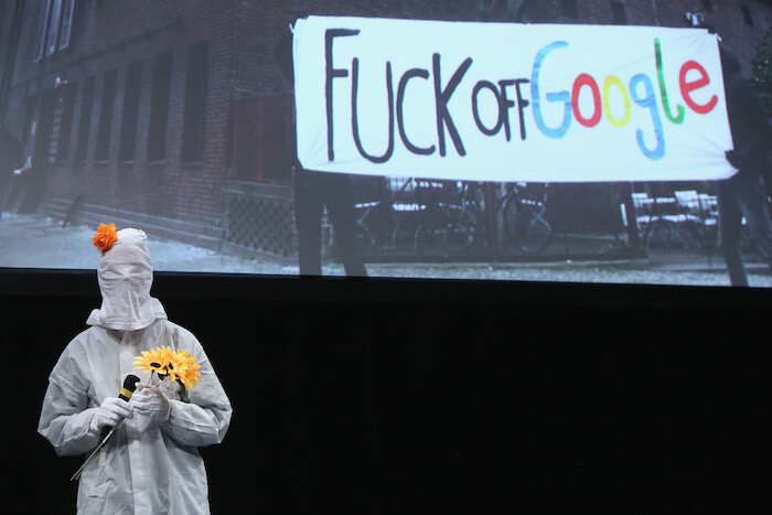 Challenging oppression is as much a mission for the speakers as for the artists. Right out of the gate, Nina Power rallies for beheading hegemonic leaders, inspiring an audience member to cheer.2 Alex Foti does something similar with a freestyle rap. However, enticing the crowd with protest energy is only a preliminary warm-up for the intense discussions about cyber warfare, fractal fascism, cryptocurrency, and the weaponization of language that follow.