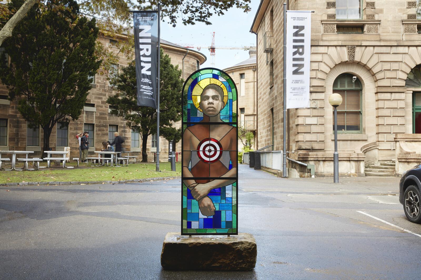 Across his practice as an artist and a curator, Brook Andrew develops kinship with non-western cultures rooted in an intersectional understanding of indigeneity. Andrew is of Wiradjuri and Celtic ancestry and was, this year, the first Indigenous artistic director of the Biennale of Sydney since the exhibition’s inception in 1973. In that role, he dealt with a wide range of artistic, community, and activist practices from Indigenous and non-Indigenous backgrounds. Featuring 98 artists and collectives, the exhibition—titled “NIRIN,” meaning “edge” in Wiradjuri—was rooted in a fierce critique of coloniality.
