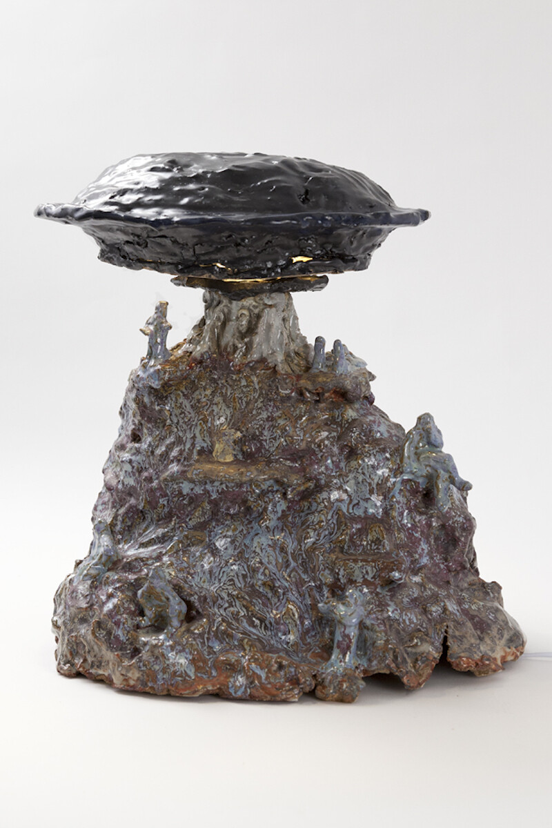 All of these feelings of losing distinctions between spaces and states of being—your point-of-view and Baga’s, Baga’s voice and Mollusca’s, the prerecorded and the present, waking and sleep—would be disturbing if the work weren’t at once so goofy and so assured in its execution. As a result, the delirium of the exhibition comes off as an overwhelming but oddly offhand, good-natured ritual of self-care, of extra- and interterrestrial communication, of “meet[ing] ourselves from some future time,” to quote the video’s voiceover. Rejecting the brand-name, bleeding-edge chilliness of the Internet of Things, Baga’s dreamy, DIY approach—enhanced by the chunky materiality of her ceramics—makes this singularity not just palatable, but intimate, reassuring, and wonderfully, messily human.