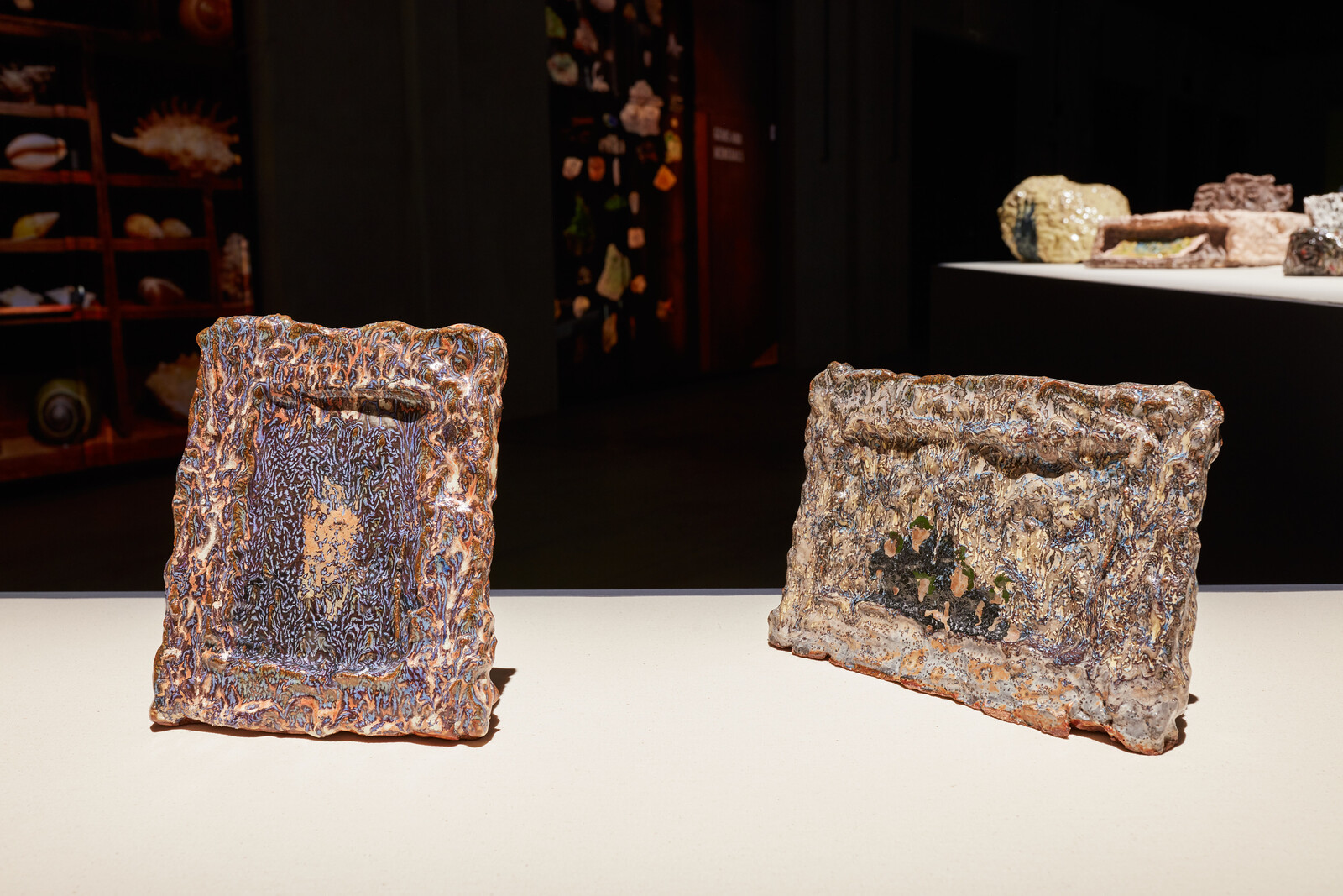The video 1620 (2020), made for this exhibition, explores a symbol of European colonization of the United States-to-be: Plymouth Rock, which is believed to have marked the place where in 1620 the Pilgrims disembarked from the Mayflower and founded the eponymous colony. A voiceover identifies in the rock the possibility of studying “narrative stem cells,” which, before they mutated, represented an earlier stage of American narrative production. Notably, this mineral relic was not mentioned in accounts of the period, first appearing in stories a century later. Baga reveals how this object has been broken and displaced in the course of its veneration, due to carelessness, bad judgment, or economic calculation. The emotional investment in this symbolic and literal cornerstone of a community’s foundational myth morphs, here, into a tale of dispersion and multiplication. It makes a daring and captivating analogy with the frail status of “truth” and individual and national identity today—not to mention current debates around the historical monuments that generations have been trained to recognize, naively, as a natural part of their heritage.