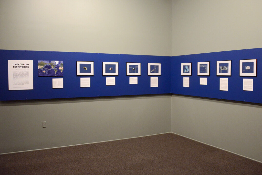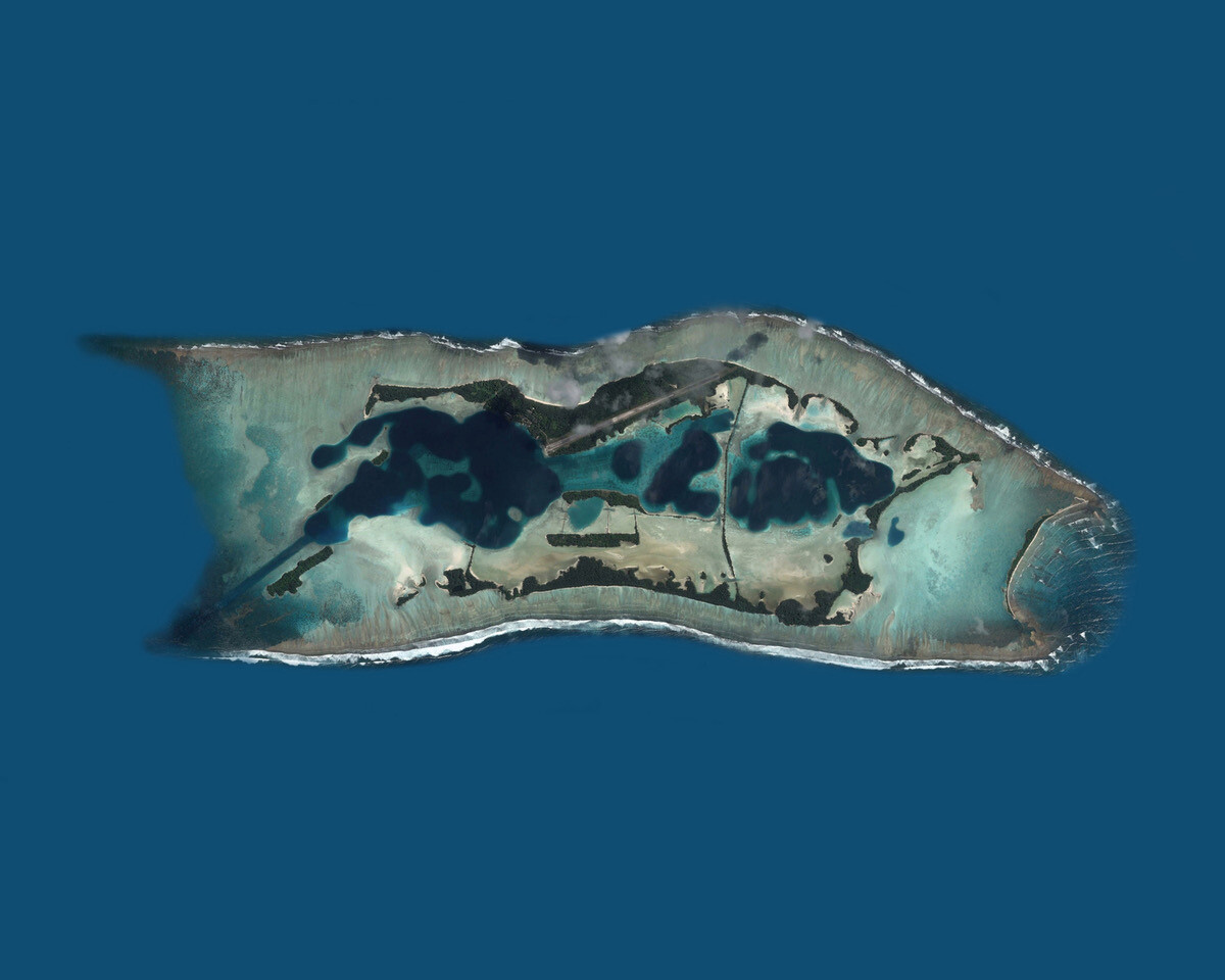 Give yourself over to this information rabbit hole, and you discover incidental poetry in the International Organization for Standardization codes assigned to the Minor Outlying Islands.4 Wonder how we, as a species, have survived for so long by scrutinizing Johnston Atoll’s record as a nuclear test site, biological warfare test site, chemical weapons storage site, and Agent Orange storage (and spillage) site. Consider a lagoon that is contaminated forever. In a macroscopic sense, “Unoccupied Territories” traces histories of aviation and intercontinental warfare. At its darkest, it is about the continuing and measurable impact of US extractivism, capitalism, and imperialism on the present. By reversing cartographic disconnection, the exhibition brings us uncomfortably close to a concrete understanding of our shared proximities.