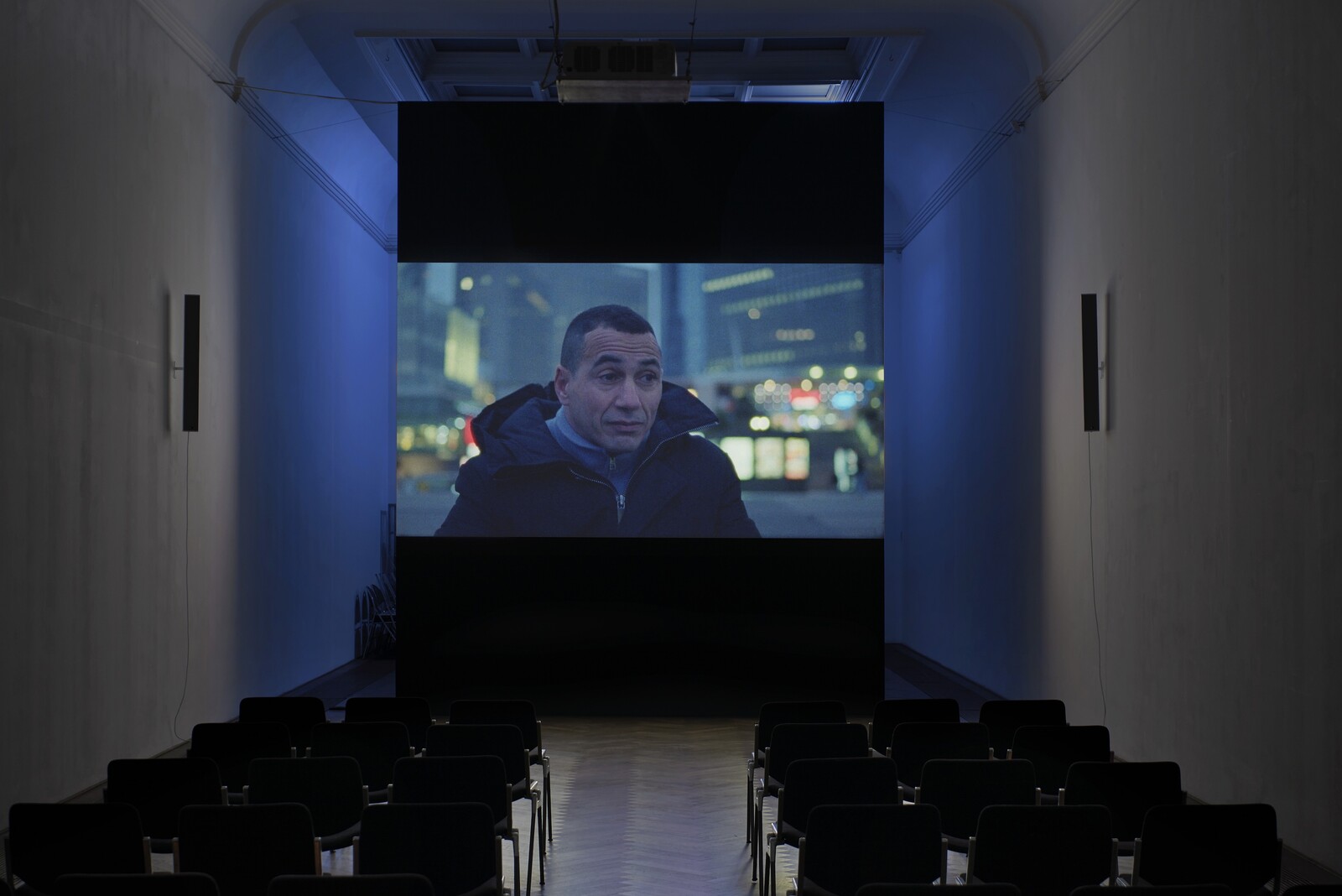 After much acclaim for the first two films on the festival circuit, this exhibition at Kunsthalle Basel (which co-commissioned the third) offers the first opportunity to survey Noujaïm’s trilogy as a body of work, shown alongside installations and sculptures. Pacific Club (2022) is screened in what a curatorial text describes as evoking “an abandoned conference space” consisting of rows of black plastic chairs. It commences an inquiry into what lies beneath the architectures of metropolitan power, sustained throughout the trilogy, with a focus on the memory of the titular underground nightclub that catered to an immigrant clientele. The oral recollections of Azedine Benabdelmoumene, a teenager during its mid-eighties heyday, reconstruct the club’s precarious existence and vanished afterlife. His narration is complemented by footage of a dancer roaming the deserted streets at night, a mournful saxophone overture, and computer-animated interludes summoning the club’s social world. What could play as a straightforwardly sentimental documentary tribute is given a digressive form with a conceptual twist: at night, when the district becomes a ghost town, it’s haunted by embodied memories of its vanished histories.