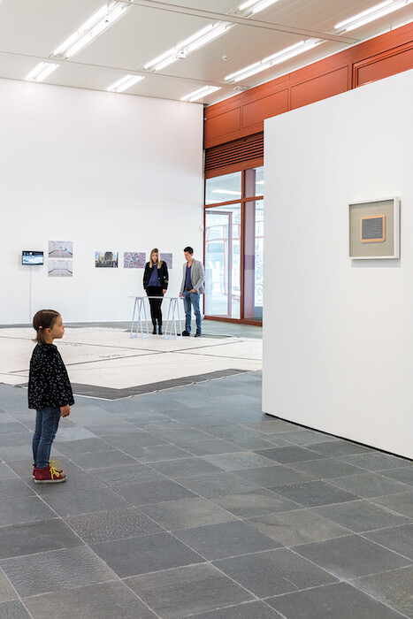 Solidarity is to be found elsewhere in town. Viewers entering contemporary art museum 21er Haus walked over the floor plan of the Museum Morsbroich in Leverkusen, Germany, from which this exhibition “Duet with Artist” traveled. The work is a version of Mischa Kuball’s leverkusen_transfer (2017), in which the German artist placed a large sheet printed with the floor plan of the Morsbroich space in front of the city hall. It was spread there for three months, exposed to the elements and the footprints of passersby, then brought into the museum, snugly fitting its floor. In Vienna, the same floor piece becomes a trace of absence, or of the possibility of absence—last year the city of Leverkusen suggested the Morsbroich be closed and its collection deaccessioned to pay for the museum’s financial difficulties—as one institution aligned itself with its struggling partner.