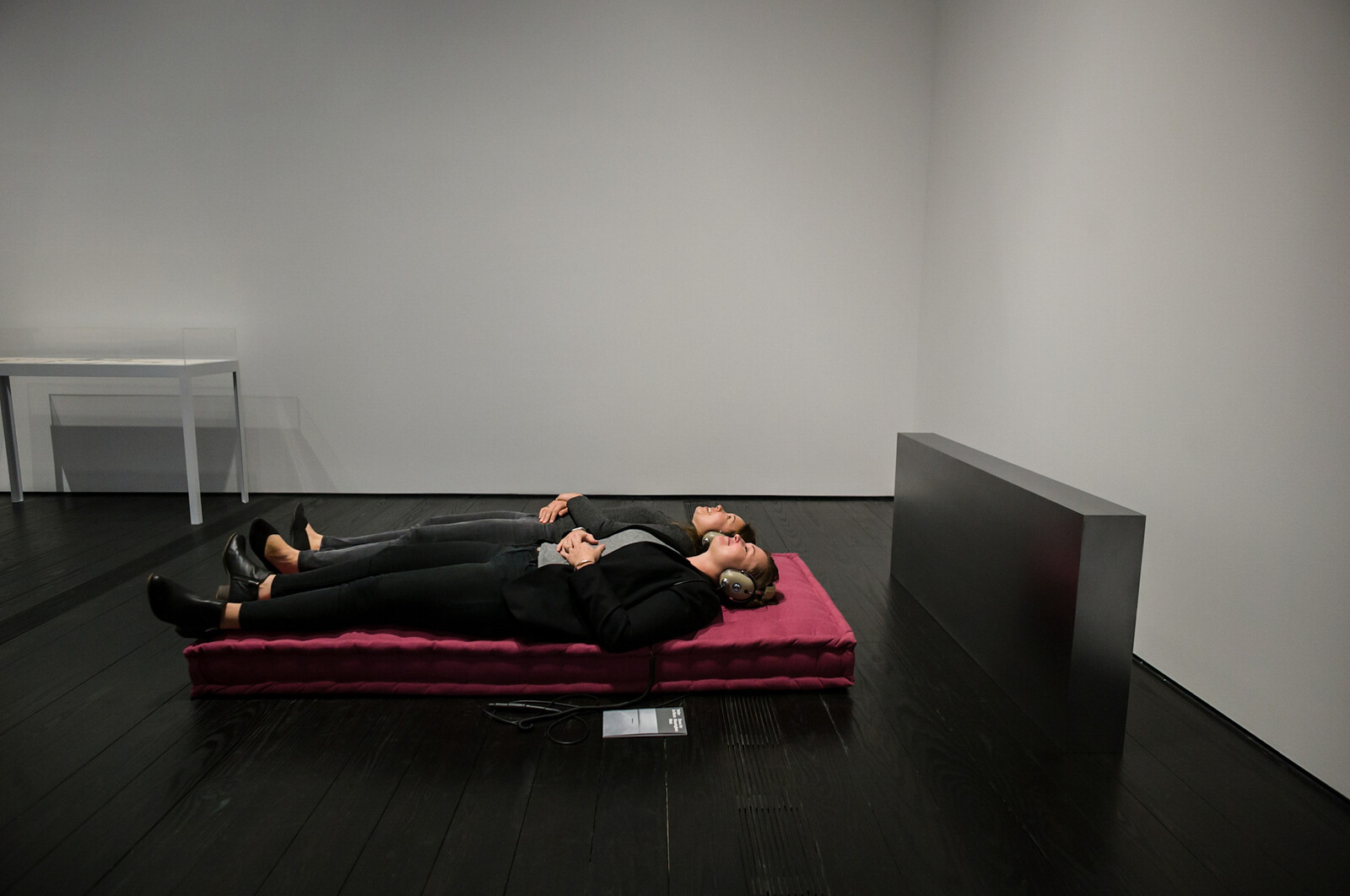The Walter De Maria exhibition at the Menil has everything: guns (HARD CORE, a film from 1969, shows Michael Heizer and an actor dueling in the desert), swearing (“Color, Size, Shape, Shit” is number 25 on the list of One Hundred Activities, a score work from 1961), and even the faint possibility of a romantic encounter in the form of a pink mattress and a pair of headphones playing seductive and relaxing field recordings of the Atlantic’s steady breath (Ocean Bed, 1969).