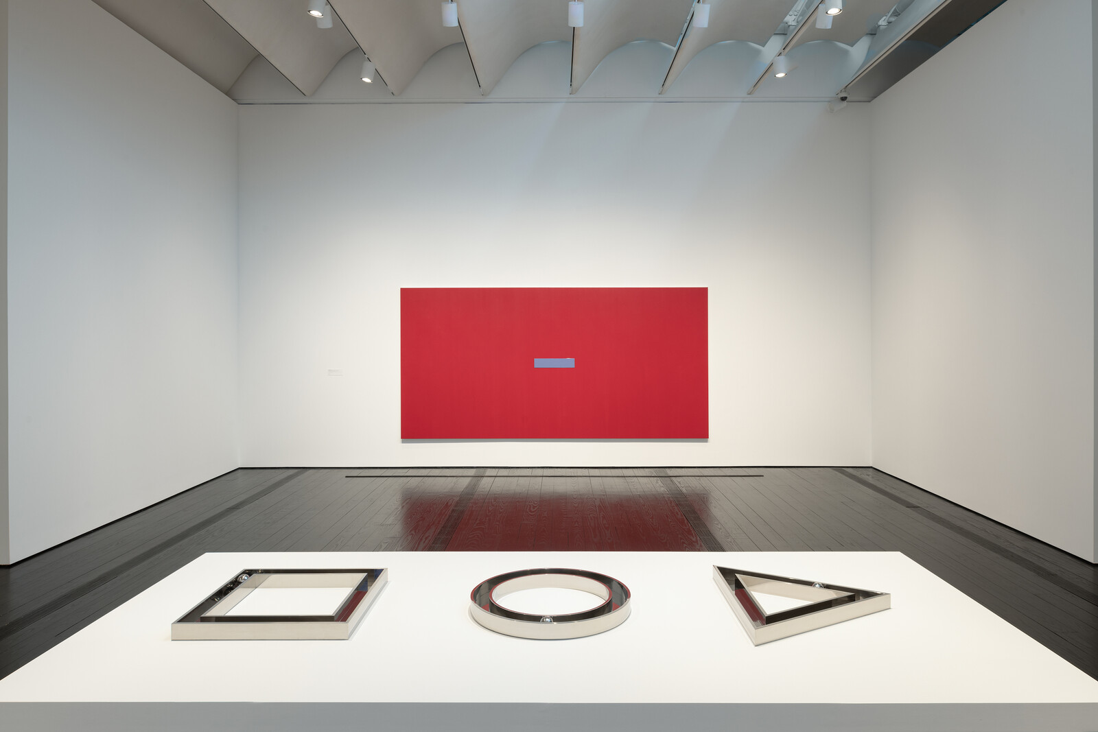 The narrative of the exhibition has but one lapse in judgement. In the penultimate gallery is a late diptych, The Statement Series (2011). These were made at the end of the artist’s life, when his stature allowed him to become the court artist of the Marshall Plan and conceive of work whose rhetoric was universalist in the worst possible way. The paintings are large, red-and-blue monochromes with steel plaques that pronounce “NO WAR NO” and “YES PEACE YES,” respectively. An admirable sentiment that falls flatter than the canvas itself. They are prudently excluded from the modest exhibition guide.