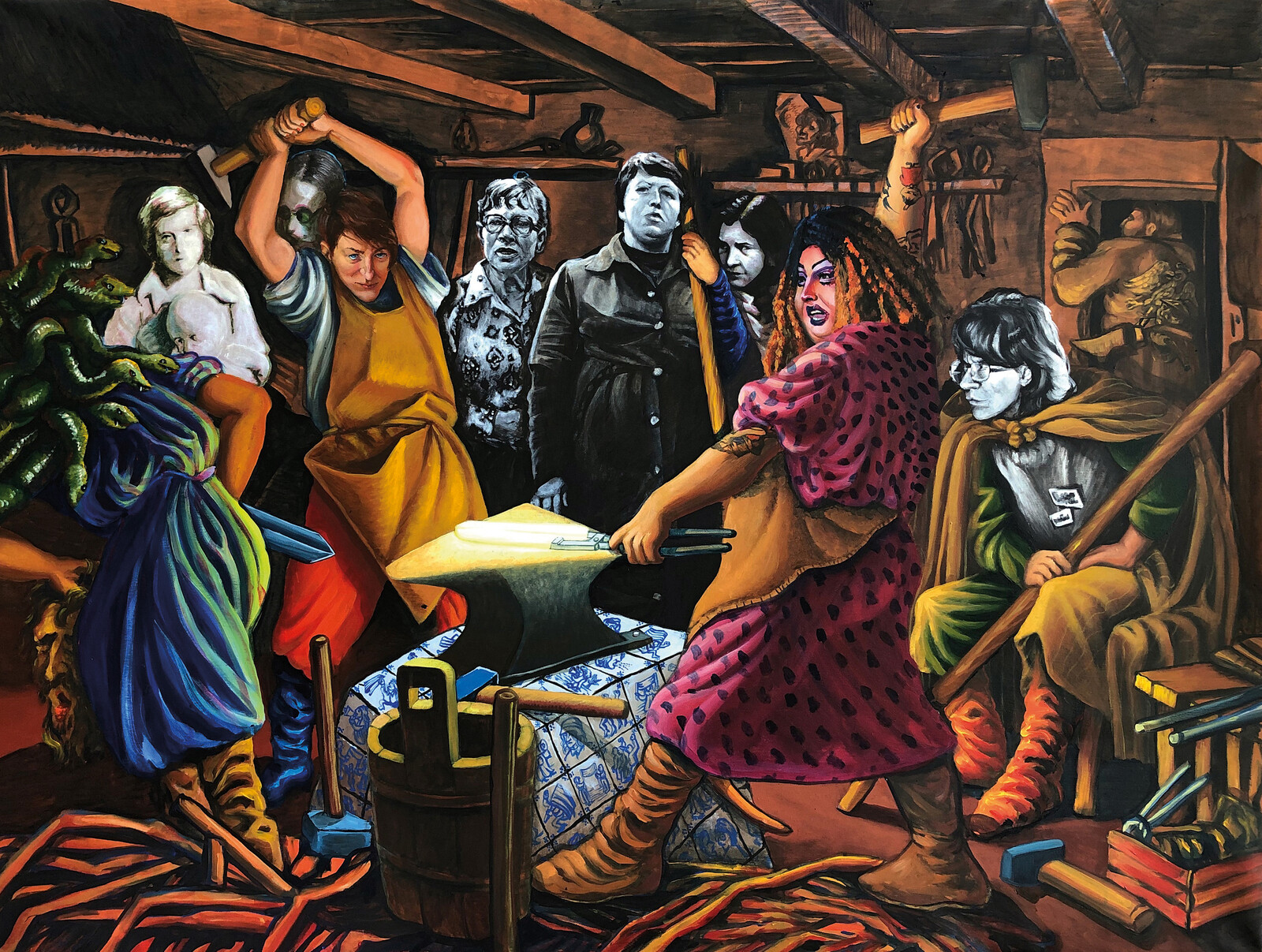 Waliszewska’s surrealist take on Slavic iconography is part of a broader trend also observed in “The Discomfort of Evening”, curated by Magdalena Komornicka at Zachęta National Gallery of Art. In this survey of recent developments in Polish art, the surrealist tropes of dreamlike introspection and jarring juxtaposition are used to express individual and collective anxieties. The dense arrangement of the show—a wink to the sudden abundance of the 1990s, a result of the country’s transition to a capitalist economy—adds to the sensation of being overwhelmed. The exhibition showcases an emerging generation: highlights include the hilarious queering of national symbols by Kacper Szalecki, Karolina Wojtas’s dissection of the traditional family model, the underbelly of history as portrayed by Tomek Paszkowicz and Anna Grzymała, and affect as a double-edged sword in the work of Agata Słowak.