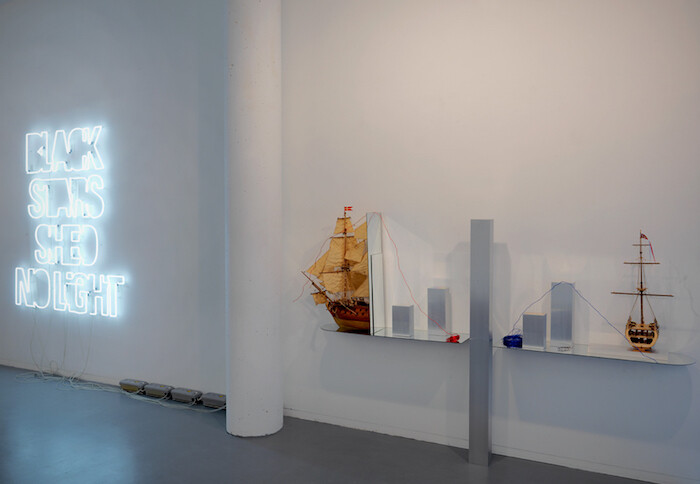 The initiative’s curatorial statement foregrounds language and communicability, pointing to the multiple democratic crises on either side of the North Atlantic. From this proposal the exhibitions cluster works in arrangements that produce more of a sense of tonality than a message per se.
