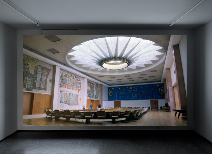 At Fons Welters, contributions by Falke Pisano, Otto Berchem, and Yael Bartana are sharp-edged and formal. Here, the gallery’s stark, unembellished rooms allow for a focus on the semiotics of art-making in its primary elements. Meanwhile at tegenboshvanvreden, extensive presentations by Slovenian artist Jasmina Cibic and Greek artist Antonis Pittas have a more elegiac sensibility. Across Cibic and Pittas’s multi-media installations, Enlightenment grammars of modern progress appear paradoxically faded and worn down by European history.