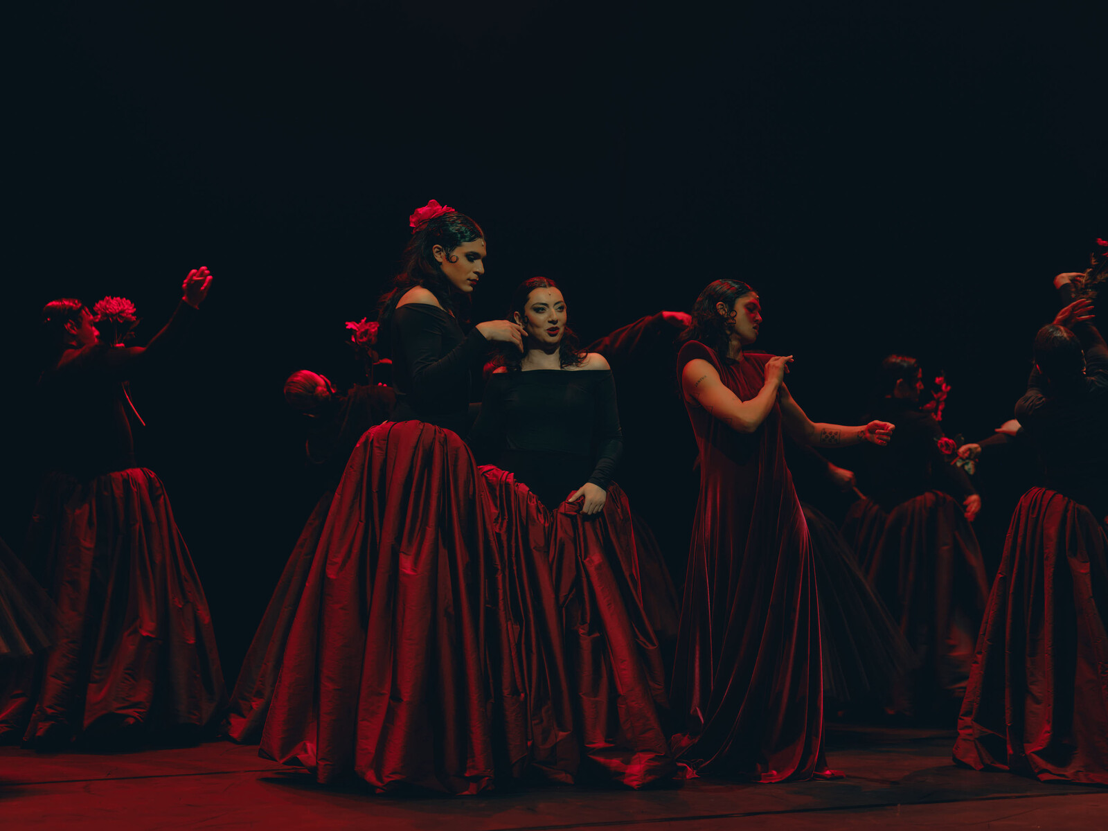 There are two narrative lines: Bizet’s operatic rendering of the tragic story of the passionate Roma cigarette factory worker Carmen murdered by a former lover, the soldier Don José, after leaving him for a toreador is the first. The second follows a single-minded forensic archaeologist, played by Perle Palombe, in her attempt to have a Spanish Civil War grave opened. In this grave is said to be the body of the Red Paloma, a flamenco singer forced to perform in front of Franco before being executed. The archaeologist’s attempts are thwarted by a senior figure in the institution where she works who by turns wants either to monetize the dig via the heritage industry or refuse to fund it due to the potential political repercussions and upset caused to donors with historical links to Franco’s ultraconservative regime. The two elements circle each other throughout the performance until a final act in which Carmen and Paloma become one, the point being that violence against women and minorities is transhistorical and ongoing.