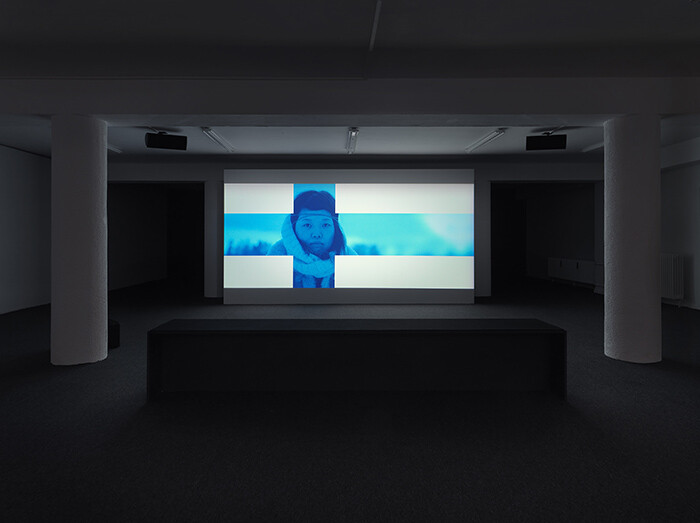 Having transformed Capitain Petzel’s glass showroom gallery into a dark, carpeted two-floor Kino, Yael Bartana went on to invert heaven and hell. Inferno (2013), screening on the ground floor, was all fire, brimstone, death and destruction, while True Finn (2014), in the basement below, was a peaceful haven of snowy landscapes and wood-paneled interiors, in which the workings of compromise, tolerance, and freedom of speech were played out. The first film is a mock biblical epic—a “historical pre-enactment” that fuses fact and fiction by staging the destruction of a replica of Solomon’s Temple which, incredibly enough, was recently built in downtown São Paulo by an evangelical Neo-Pentecostal church. In the second film, we follow the progress of eight Finnish participants from different ethnic backgrounds brought to a remote house in the countryside in order to determine which of them is the “True Finn.” Like the Israeli artist’s previous films, these works both traffic in polemic and provocation, but are nonetheless rooted in the political realities of their respective sites. In both, Bartana plays devil’s advocate, zeroing in on the nub of the dilemma—whether adversarial claims on religious history, or on national identity—and taking it to a logical, if extreme, conclusion. In the light of religiously motivated violence across the Middle East, and the recent attacks in Paris and Copenhagen, as well as the concurrent rise of anti-immigration sentiments across Europe, both also strike a depressingly topical chord.