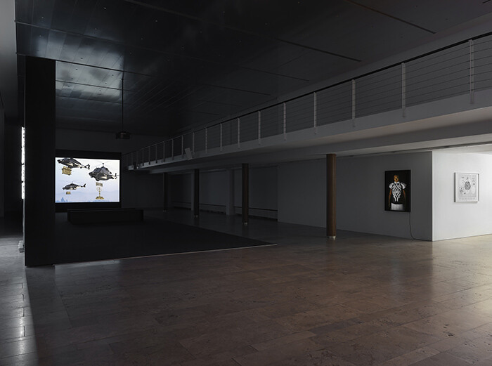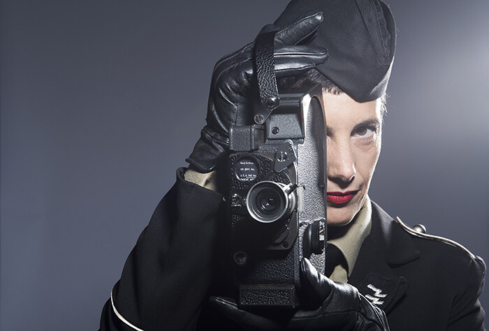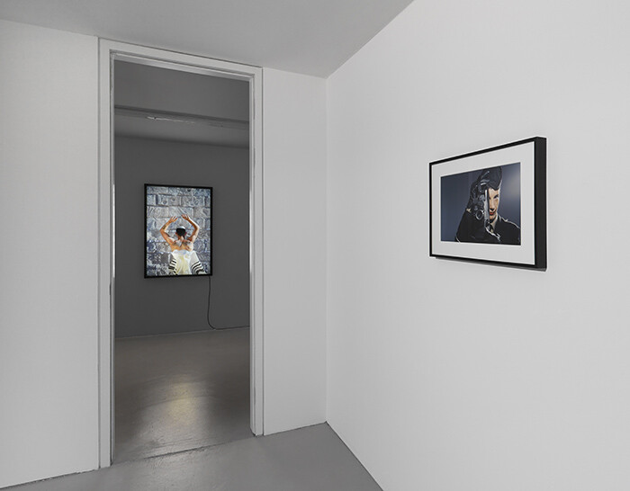 In Capitain Petzel, a self-portrait of the artist (Stalag, 2014) looks down from the mezzanine level. An early product from a forthcoming work, it already suggests the direction the next action might take. The artist, dressed in the uniform of female SS guards, stares us down, one eye looking straight at us, the other through the lens of a film camera. Is this a taste of provocation to come?