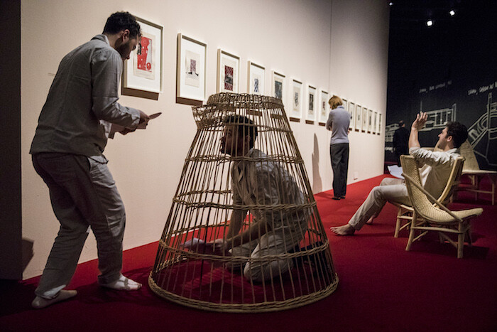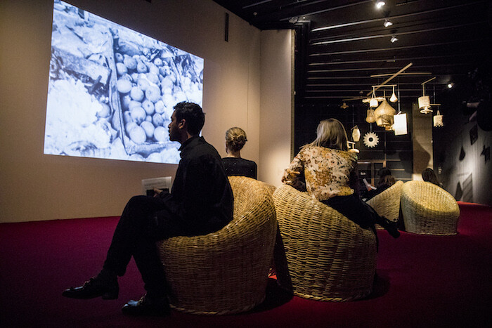 Artists have long been acknowledging viewers as active participants in the construction of meaning, yet “Agadir” suffers from an excessive reliance on this approach. Surely a topic so grave merits further historical elucidation and a more vivid, impactful affect? It may be that the fortnightly performances—during which actors from London’s Guildhall School of Music and Drama read sections from Khaïr-Eddine’s novel while interacting with the rattan sculptures—weave the show into a more cohesive experience, or lend it the corporeal weight it otherwise lacks. But most viewers, inevitably, will not encounter them.