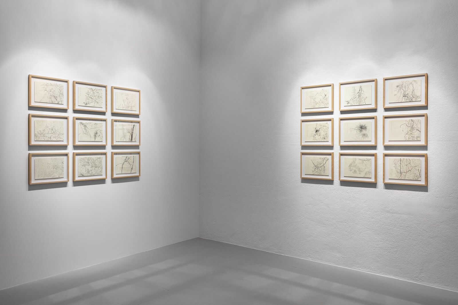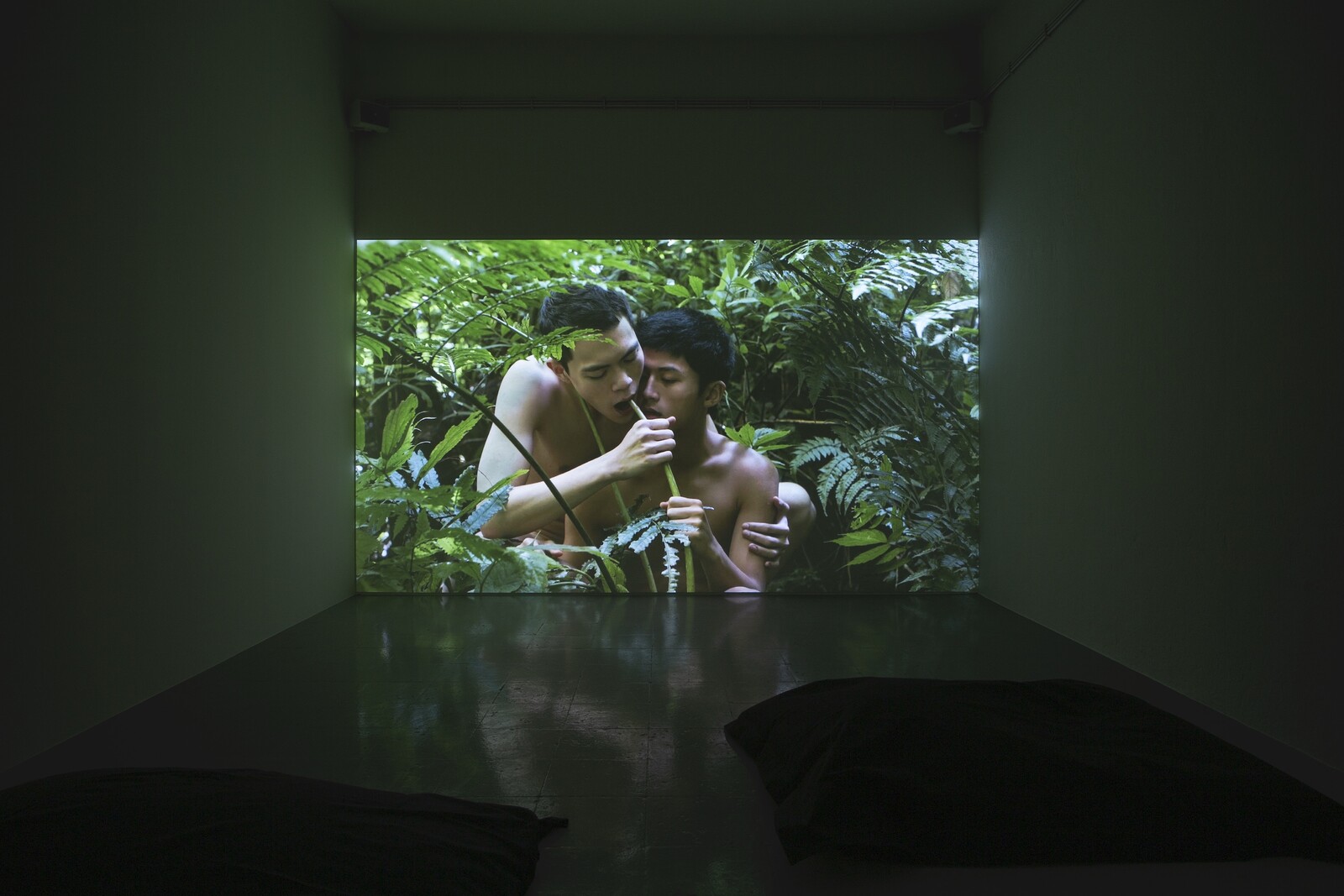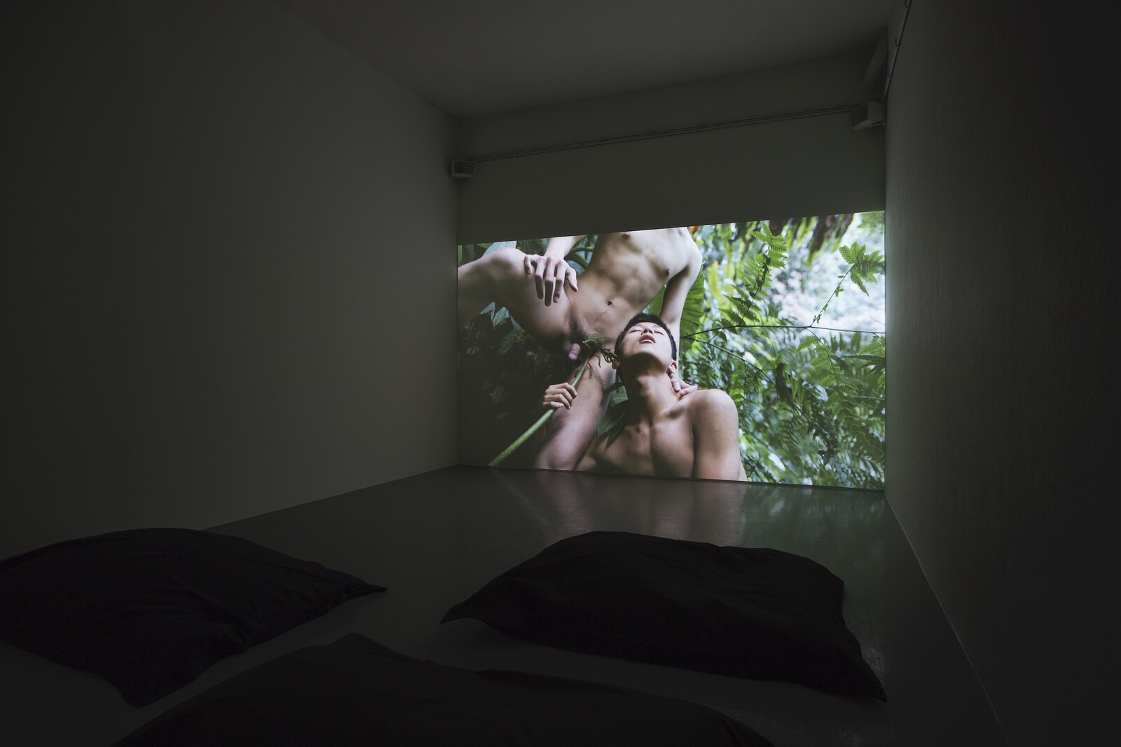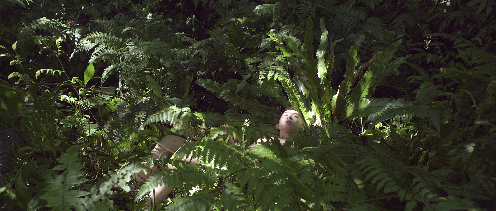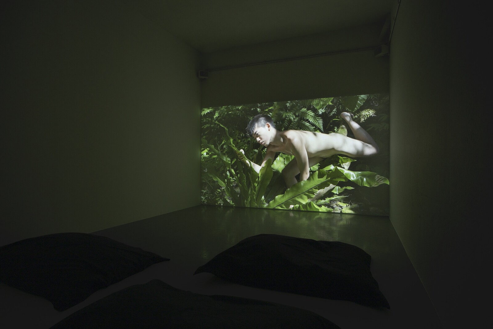 Zheng Bo’s practice often expresses this tension in ways that acknowledge the different ecological philosophies of East and West while queering the relations—and expectations—that humans have about plants. His first solo show in Portugal, at Kunsthalle Lissabon, includes two sets of works: “Drawing Life” (2020–ongoing), a new series of framed charcoal drawings depicting plants the artist found during his walks in Hong Kong’s Lantau Island, where he lives, during the Covid-19 pandemic; and “Pteridophilia” (2016–ongoing), a series of four videos in which naked men in a Taiwanese forest—in groups, in pairs, or alone—have sex with ferns by licking, biting, stroking, and rubbing them.
